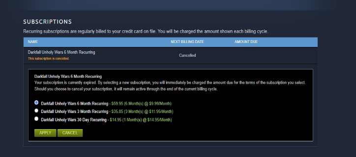 任何在 Steam 上以阿根廷比索或土耳其里拉進(jìn)行了訂閱的客戶(hù),如其訂閱仍然有效,則其訂閱將在有效訂閱期結束后自動(dòng)終止。您可以在 Steam 的訂閱管理頁(yè)面中重新以美元訂閱。要進(jìn)入此頁(yè)面,請前往 Steam 客戶(hù)端,在右上角的用戶(hù)名下選擇“賬戶(hù)詳情”,然后點(diǎn)擊頁(yè)面頂部的“管理訂閱”鏈接。