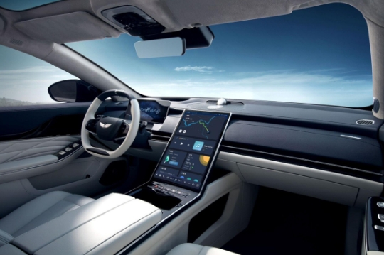 該車(chē)座艙則采用相對簡(jiǎn)潔風(fēng)格,搭載一塊 17.38 英寸豎向中控大屏和尺寸較大的液晶儀表,同時(shí)配有少量的實(shí)體按鍵。具體配置方面,該車(chē)搭載 AliOS 智能座艙系統,并內置面部識別、70 英寸 AR-HUD、19 揚聲器沉浸式音響系統。