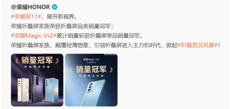 榮耀折疊屏家族霸榜雙十一 掀起折疊屏普及風(fēng)暴