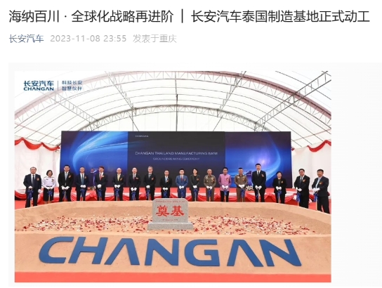 長(cháng)安汽車(chē)首個(gè)海外生產(chǎn)基地在泰國動(dòng)工,設計產(chǎn)能 20 萬(wàn)輛 / 年
