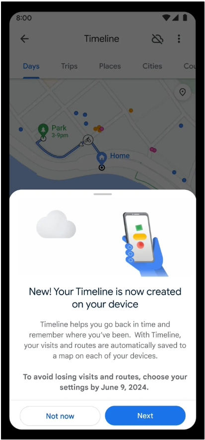 谷歌在新聞稿中表示在后續更新中,用戶(hù)去過(guò)的地方、前往目的地的路線(xiàn)等信息會(huì )自動(dòng)保存在每臺設備本地上,方便用戶(hù)更好地控制數據。