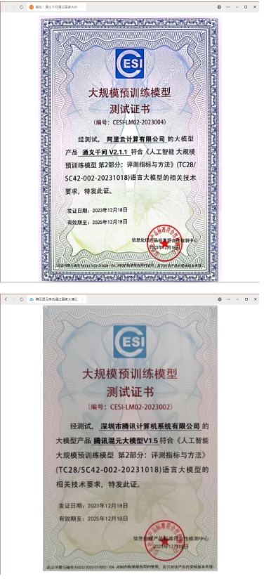 綜合騰訊云、阿里云官方公眾號,在 12 月 22 日的全國信息技術(shù)標準化技術(shù)委員會(huì )人工智能分委會(huì )全體會(huì )議期間,國內首個(gè)官方“大模型標準符合性評測”結果公布,騰訊混元大模型、阿里通義千問(wèn)等大模型成為首批通過(guò)評測的四款國產(chǎn)大模型的其中之二。