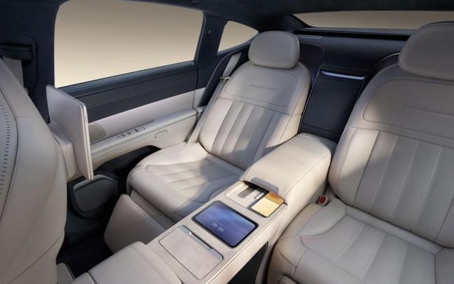 蔚來(lái) ET9 車(chē)長(cháng)超 5.3 米,寬 2 米,軸距 3.2 米以上。在超大空間體量下,蔚來(lái) ET9 選擇四座布局,首創(chuàng )前后排貫穿的“行政橋”,可以實(shí)現分區的同時(shí),集成多項功能。例如,可以 360°無(wú)級調節的行政桌案,能夠滿(mǎn)足后排乘客閱讀辦公、會(huì )議對談和演示分享的需求。
