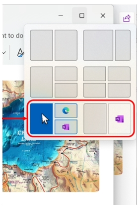 Windows 11 的“Snap Layouts(對齊布局)”中將顯示建議,幫助用戶(hù)立即將多個(gè)應用窗口對齊在一起。將鼠標懸停在應用上的最小化或最大化按鈕(注:WIN + Z 快捷鍵)上并啟動(dòng)布局框時(shí),用戶(hù)將看到各種布局選項中顯示的應用圖標,系統將推薦最有效的布局選項。