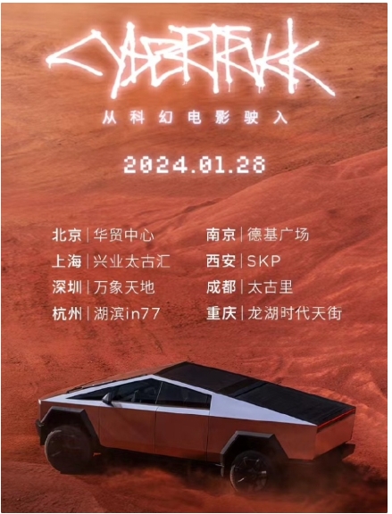 特斯拉 Cybertruck 車(chē)型 1 月 28 日開(kāi)啟中國巡展,地點(diǎn)現已公布