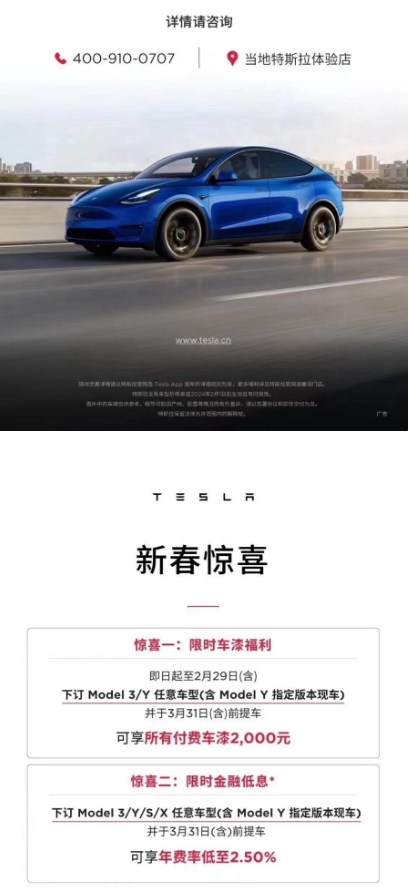 此外,特斯拉官網(wǎng)更新,現推出了“新春驚喜”活動(dòng),購買(mǎi)特定版本 Model Y 現車(chē)可獲得現金優(yōu)惠 8000 元,而且還能花 2000 元選配剛推出的“快銀”等新車(chē)漆。