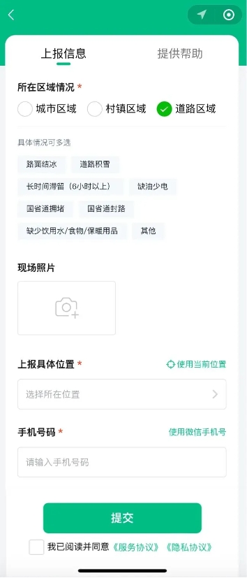 微信小程序上線(xiàn)“低溫雨雪冰凍信息上報平臺”,用于個(gè)人求助或提供幫助
