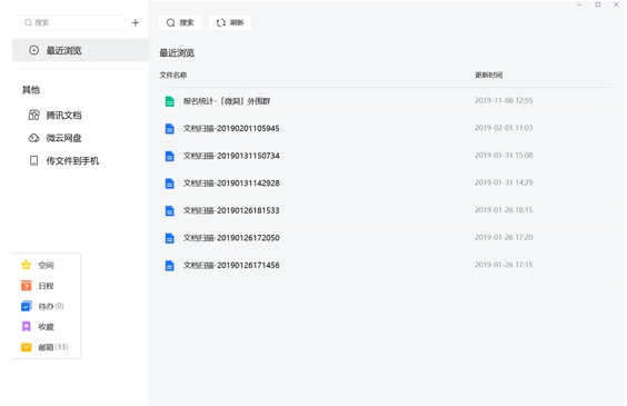 此外,新版QQ也在功能取舍上有所平衡。譬如辦公簡(jiǎn)潔版的TIM,幾乎砍掉了QQ所有娛樂(lè )性的功能,只在側邊欄位保留了騰訊文檔、微云網(wǎng)盤(pán)等產(chǎn)品,至于QQ空間等“與辦公無(wú)關(guān)”的產(chǎn)品,則通過(guò)收藏按鈕,與郵箱、日程、待辦放置在產(chǎn)品界面的底部。