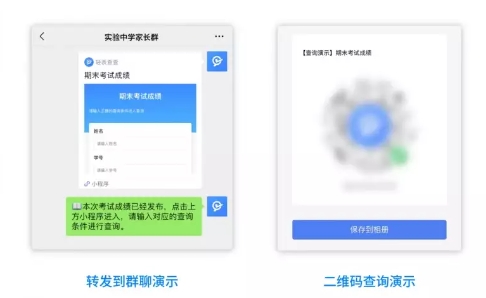 完成設置后,小程序會(huì )顯示創(chuàng )建成功,教師可以選擇查看預覽來(lái)保證數據準確性和完整性,也可以直接將查詢(xún)界面分享給微信內的聯(lián)系人、微信群,也可以生成小程序碼供查詢(xún)用戶(hù)掃碼進(jìn)入查詢(xún)或者嵌入到公眾號的文章中,實(shí)現了成績(jì)查詢(xún)的便捷化和普及化。