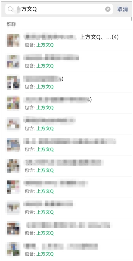 只需要在微信首頁(yè)搜索框輸入自己的昵稱(chēng),然后在搜索結果的群聊部分,點(diǎn)擊“更多群聊”,就可以一覽無(wú)余了。