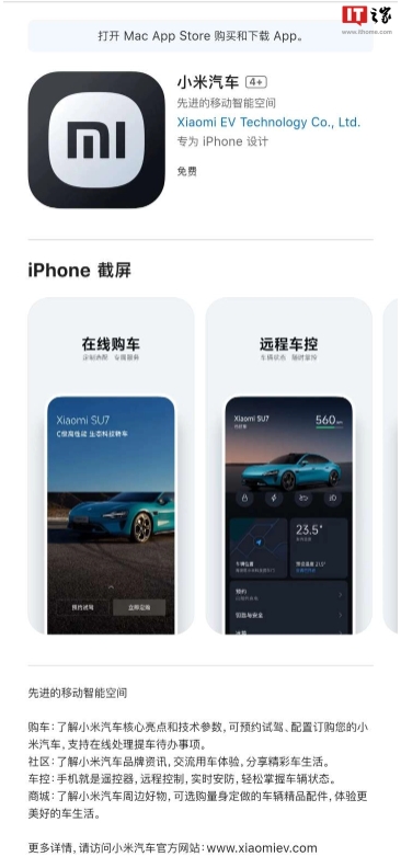 小米汽車(chē)官方 App 上架,為發(fā)布 SU7 鋪路