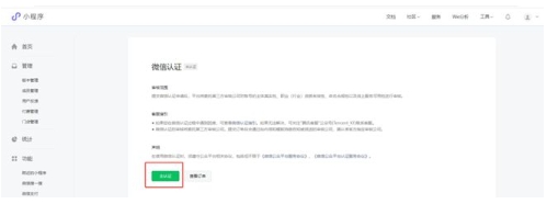1、進(jìn)入初始狀態(tài)的后臺,會(huì )出現4個(gè)綠色按鈕,點(diǎn)擊第二個(gè)“去認證”。
