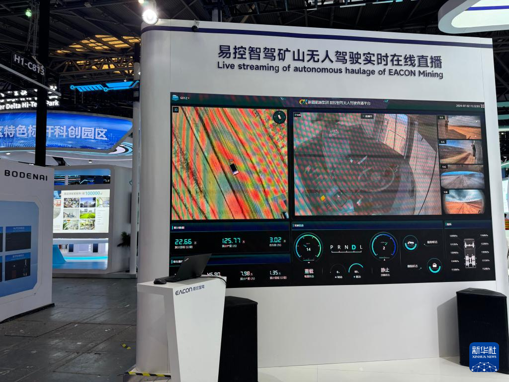 展廳的另一處,易控智駕正在實(shí)時(shí)直播國內一大型露天煤礦無(wú)人作業(yè)情況?,F場(chǎng)工作人員介紹,在國家電投內蒙古公司南露天煤礦,自卸車(chē)無(wú)人駕駛運輸項目已安全平穩地運行了半年多,不僅可進(jìn)行24小時(shí)連續作業(yè),還曾創(chuàng )下單日最高產(chǎn)量2.18萬(wàn)立方米的紀錄。